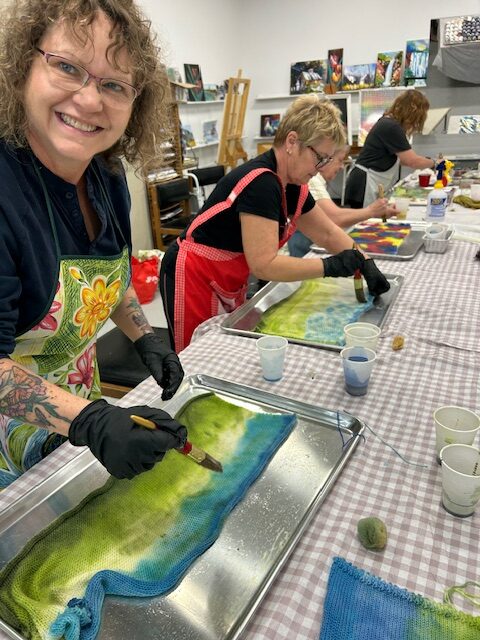 Paint-a-Blank classes are approximately 2.5 hours in length and include a double sock blanket of 80/20 merino/nylon fingering weight yarn for dying and all necessary tools and materials. Additional blanks of yarn can be purchased on the day of the class.