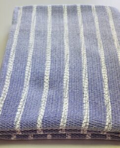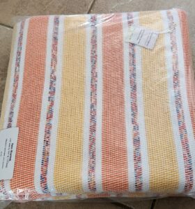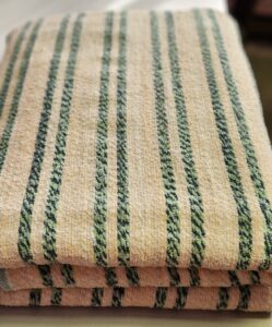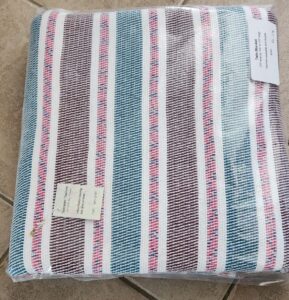 Lise Portelance weaves colourful traditional blankets known as “Catalognes.” Working with modern fibers, she creates a variety of sizes that are maching washable and dryable.