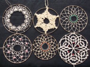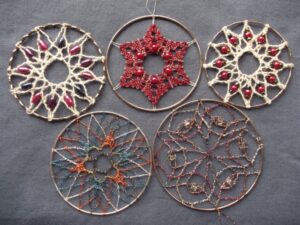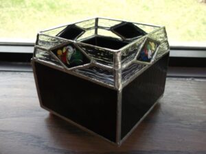 I love them all, but for now have settled into the stained glass and copper enamelling studios. At home I’m still a fibre person with spinning, bobbin lace and needle felting. I sell some of my work at the Club’s various Show & Sales throughout the year and have, over the years, given various workshops, enjoy doing demos and at present I’m taking my turn as president of the Arts Club.