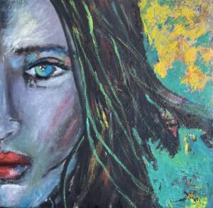 Jola Klim is a Polish-Canadian, who moved from Toronto to Elliot Lake in 2013 after 30 years of teaching and learning. Since then, she has been an artist full time creating two- and three-dimensional pieces of art (stoneware hand-built vessels, on-the-wheel bowls, mostly oil painting, and boho jewellery combining the love for the Earth. Over the years, she has been fascinated by the subject of Mother Earth and the presence of all sentient beings on it, including people. She has been working on the topic of a woman (Gaia) for years by showing in her paintings her past traumas and moving on towards the future for her own sake as well as the sake of her children.